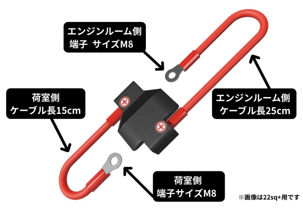 ケーブル長さ:エンジンルーム側25cm、荷室側15cm